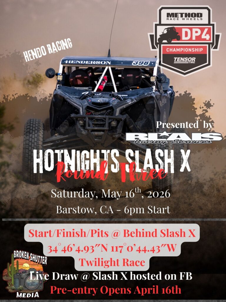DP4 Racing returns this May 16th for the third round of the 2026 Method Race Wheels DP4 Racing Championship powered by Tensor Tires, Presented by Blais Racing. The third round of the series brings riders back in the hills south of Barstow between Slash X Cafe and the 15 freeway. Round three will feature a 25-mile loop and 6 action packed laps of racing which gives our racers a chance to break in their new cars and test out their 2026 upgrades!